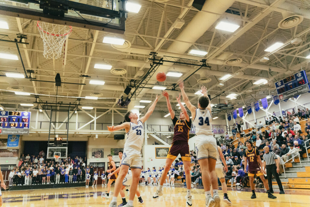 This photograph shows more emotion than maybe any I’ve taken. The North player attempted, but failed, to shoot a basket. Perhaps he’s also in physical pain. The skewed horizon emphasizes the discomfort he feels, and the players from the other team are clearly visible as well. This photo was published in The B Square, not our yearbook, so both teams were included in the photo set.