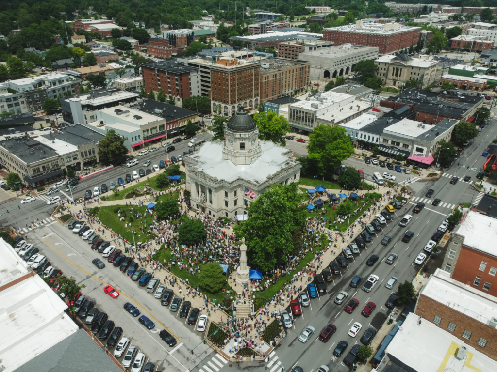 I took and curated the photo set that accompanies this article. What an event—an estimated 1,000 people protesting against the U.S. executive branch. My set included speakers and sign-holders in action, I captured wide crowd shots as well as smaller, more intimate moments, and I used my drone to show the scale of the crowd in downtown Bloomington.